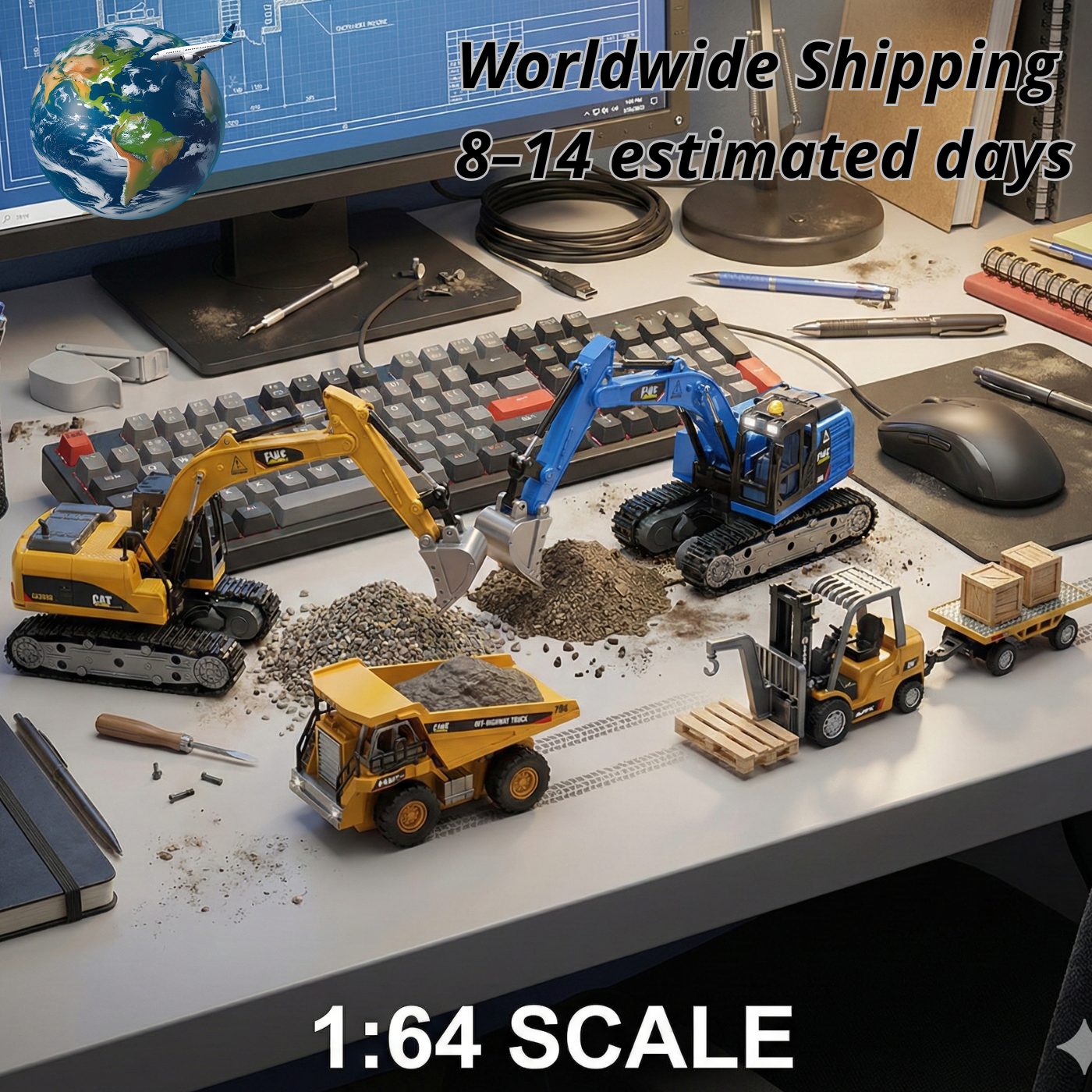 Ready to get to work? These mini machines are perfect for turning your desk into a construction zone. Whether you are lifting, digging, or hauling, there is a vehicle for every job.
