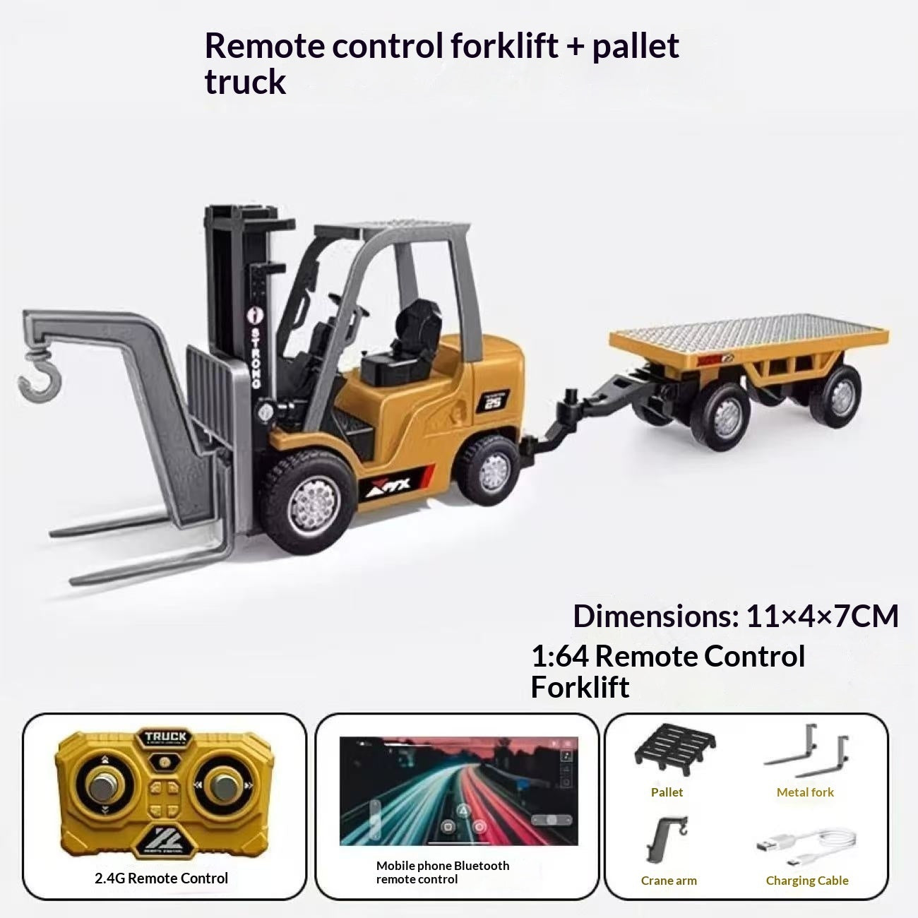 The Forklift: Precision is key. Use the standard steering to pick up pallets (included!) with accuracy.